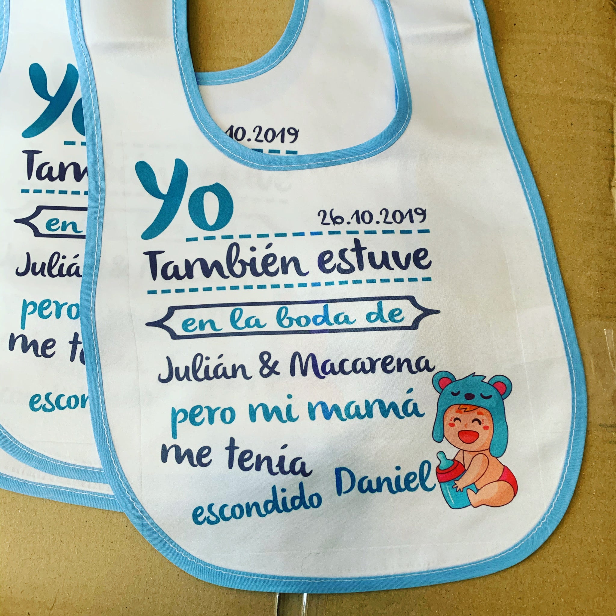 Los baberos se pueden personalizar con el diseño que más te guste y el nombre del bebé.