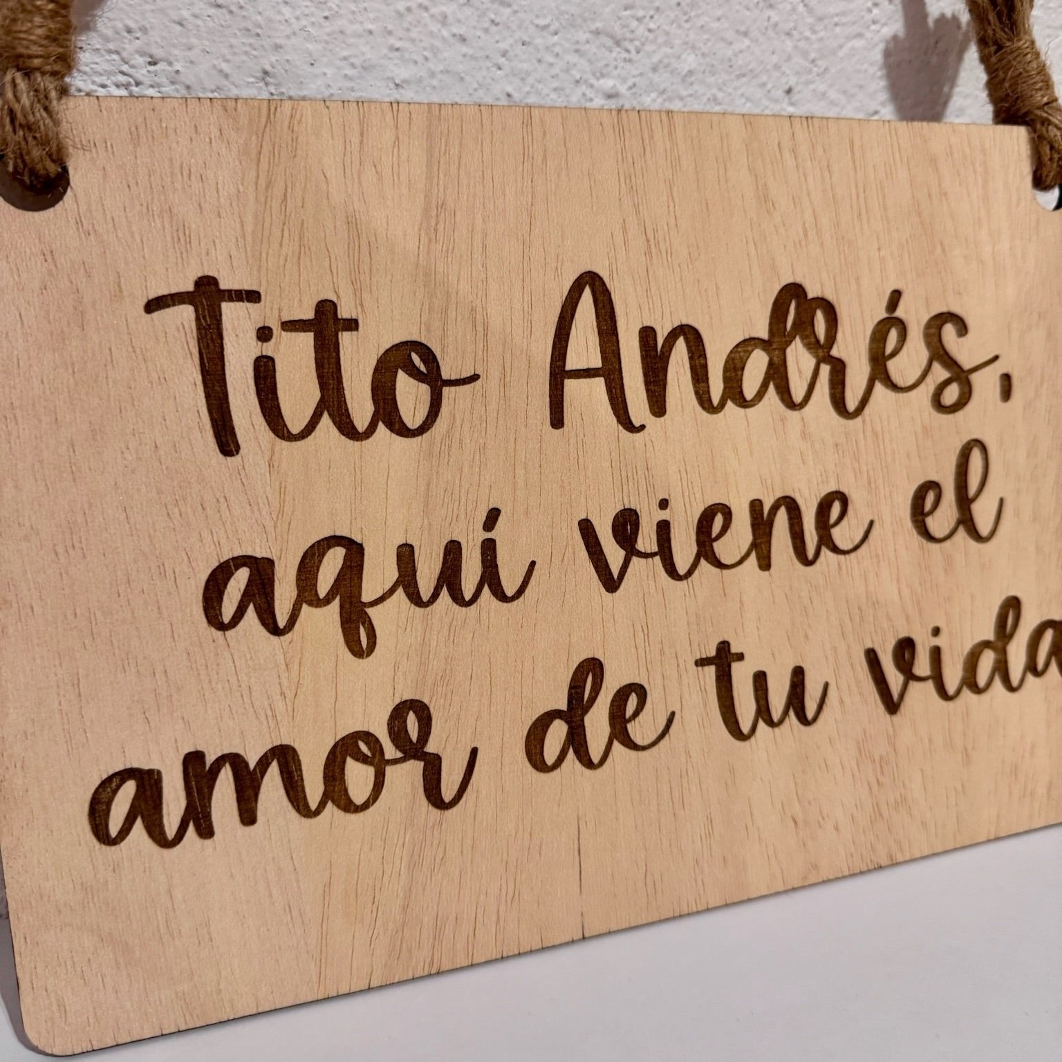 Este cartel personalizado de madera es perfecto para añadir un toque único a tu boda.