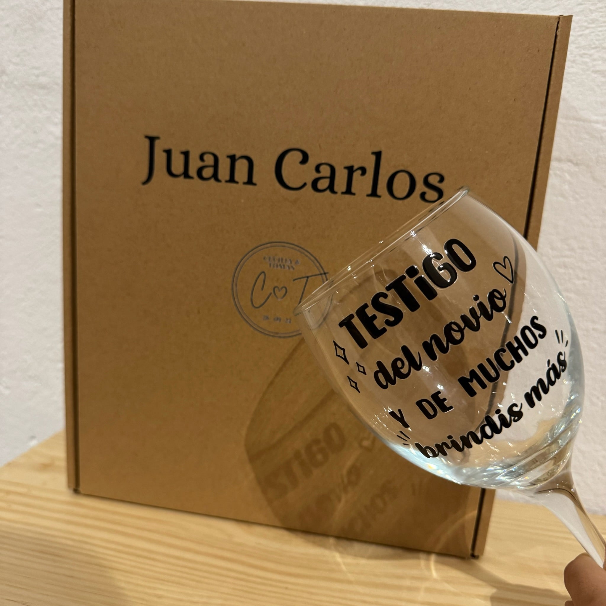 Copa de Combinado "Testigo del Novio" con Caja Personalizable