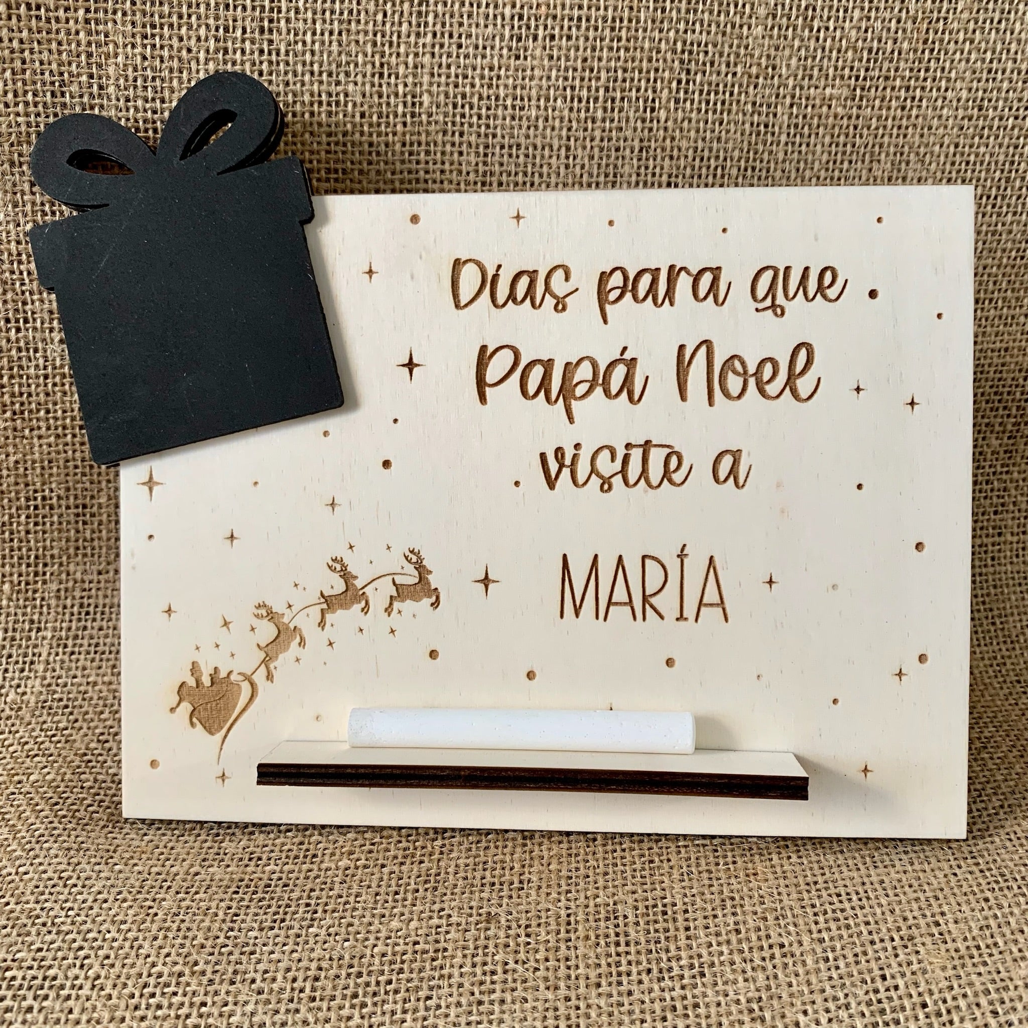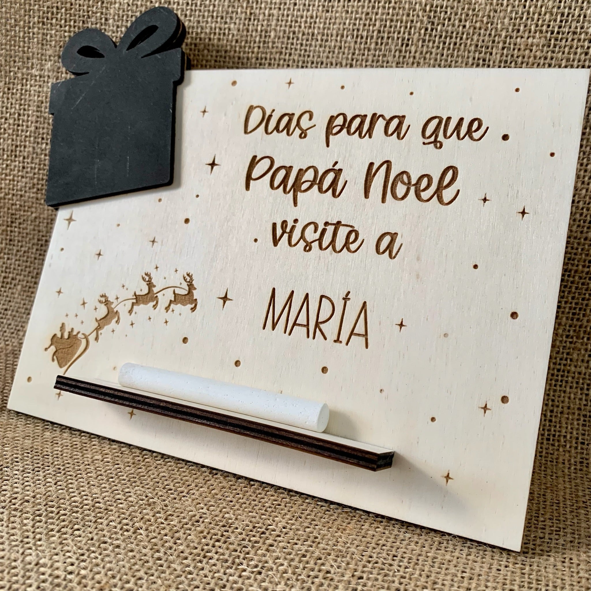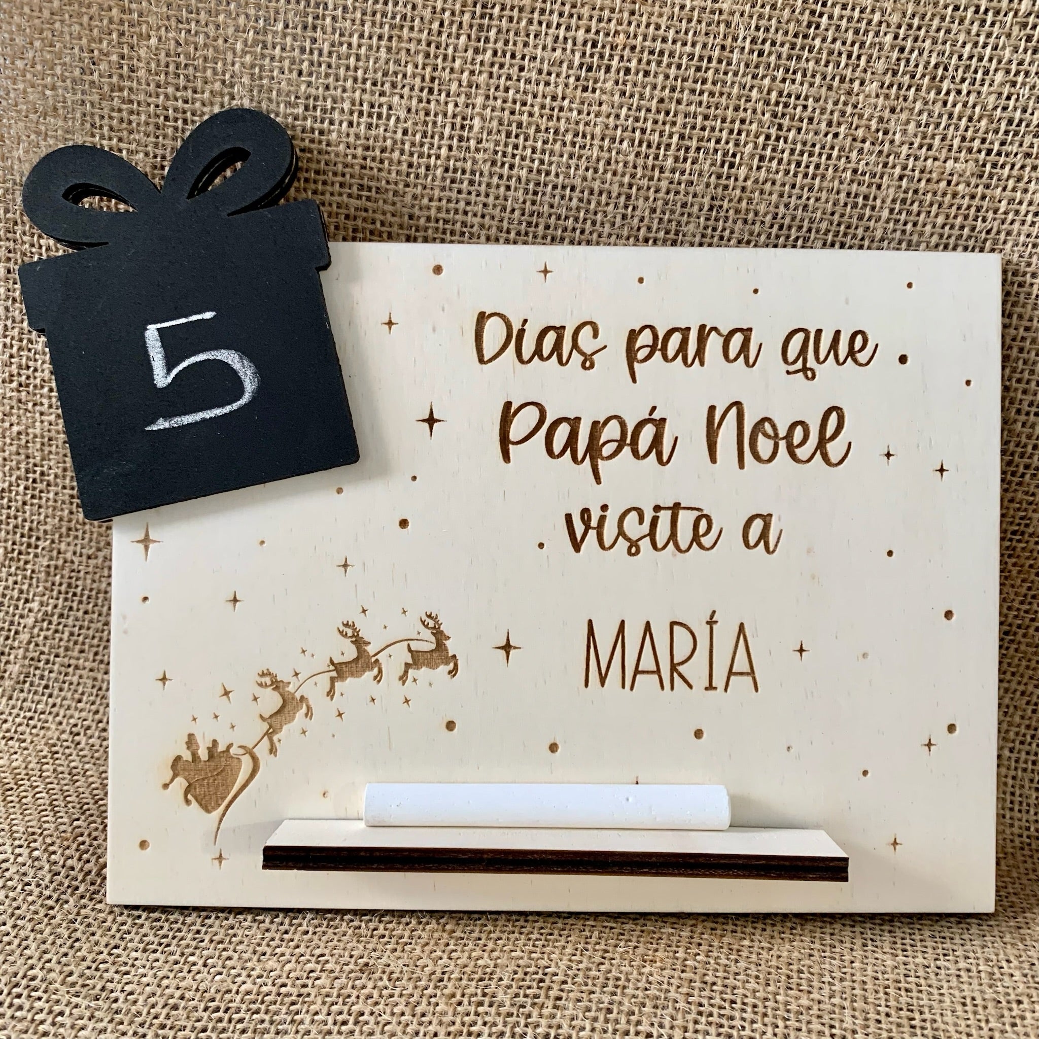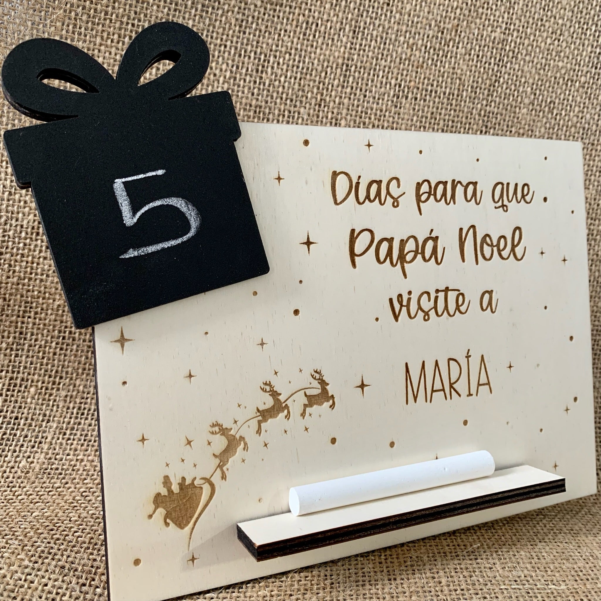 Con una pequeña pizarra en forma de regalo y una tiza incluida, podrás ir marcando los días que quedan para la Navidad en esta cuenta de madera grabada con tu nombre.