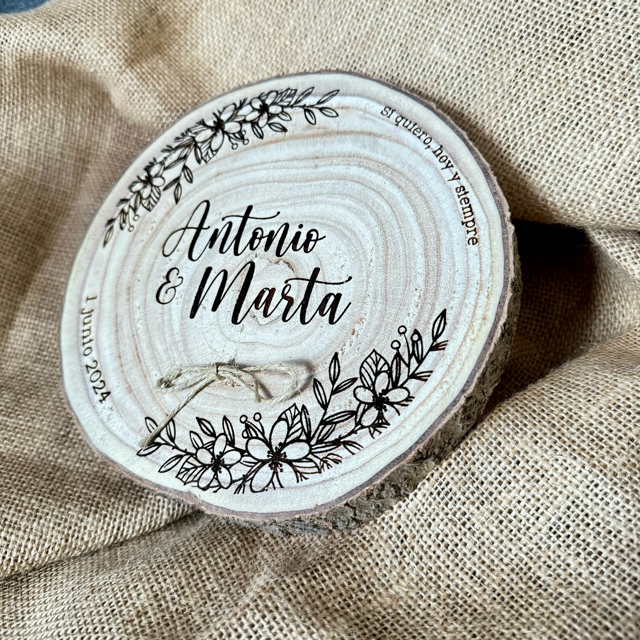Ofrecemos rodajas de madera natural, cuidadosamente cortadas y lijadas, perfectas para grabar a láser los diseños disponibles en nuestra web.